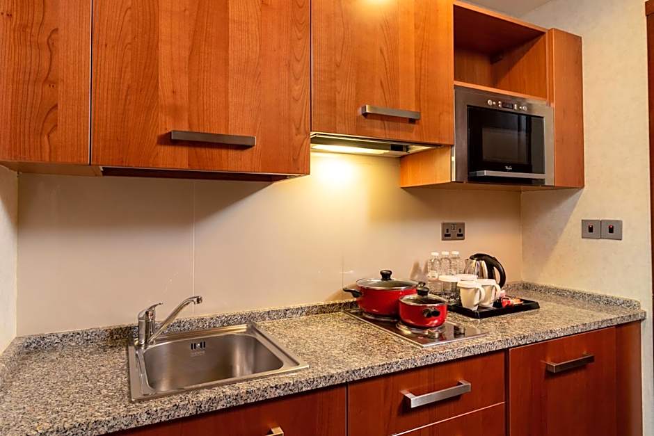 The suite's kitchenette, which has a microwave, is available for cooking and storing food. The spacious air-conditioned suite features a flat-screen TV with cable channels, a tea and coffee maker, executive lounge access, a seating area as well as city views. The unit has 1 bed.